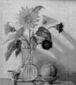 At right: Nancy Bea Miller, an award-winning figure and portraiture painter as well as a cartoonist, displays traditional paintings, including Still Life with Home Grown Sunflowers.
