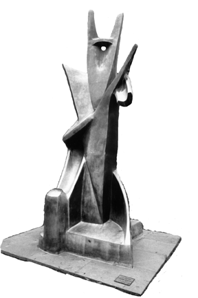 The Steinberg painting is one of 50 Steinberg works from their collection on view in the Arthur Ross Gallery (see Exhibits)--but only through January 21.King Solomon, however, is here to stay. The 14-foot bronze, completed by the renowned cubist in the year before his death in 1964, has been on loan since 1984--but was formally dedicated on October 19 as a gift to the University in honor of President Judith Rodin. Sivia Loria called it a "Solomonic decision" to give the sculpture to Penn, since she went to Wisconsin and her husband to Yale (but their daughter went to Penn and met her husband here.) Mr. Loria explained more seriously at the time of their decision, "Art deepens the dimensions of the education we offer to our brightest young minds. Dr. Rodin has articulated a bold new vision for reshaping the learning environment at Penn. We share a commitment to challenging students to use their eyes in ways that go beyond simply scanning the horizon." King Solomon stands in the heart of the campus, on 36th Street between Locust Walk and Walnut Street, opposite the Hillel Foundation.