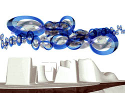 stratascape, the first creative collaboration by Hani Rashid and Lise Anne Couture, prinicpals of Asymptote Architecture, and Karim Rashid, Hani's brother and principal of the design firm Karim Rashid, Inc., will be on view this month at the ICA. stratascape explores novel formations made possible today through digital manipulation and the use of new material technologies. Against the Wall: Painting Against the Grid, Surface, Frame at the Institute for Contemporary Art. See Exhibits.